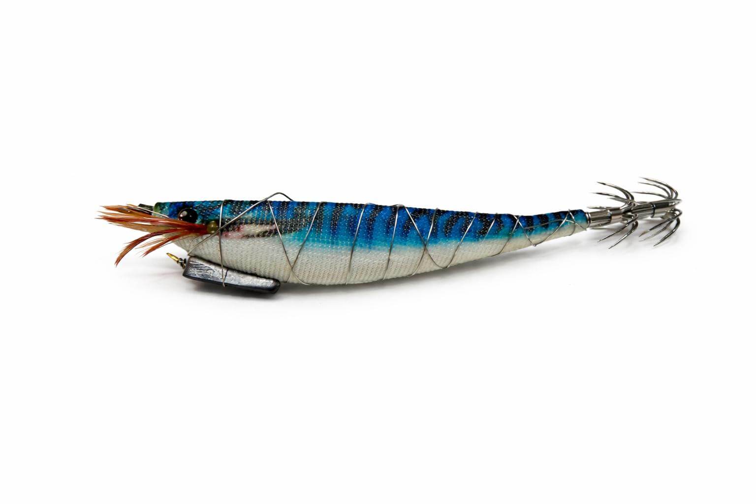 Sa teinte bleue aux reflets froids reproduit parfaitement les nuances des proies évoluant en pleine eau. Ce coloris fonctionne particulièrement bien en conditions lumineuses ou en eau claire, où les contrastes naturels prennent le dessus sur les teintes agressives. Elle attire efficacement les seiches, les calamars et les poulpes, souvent attentifs aux variations subtiles de lumière.