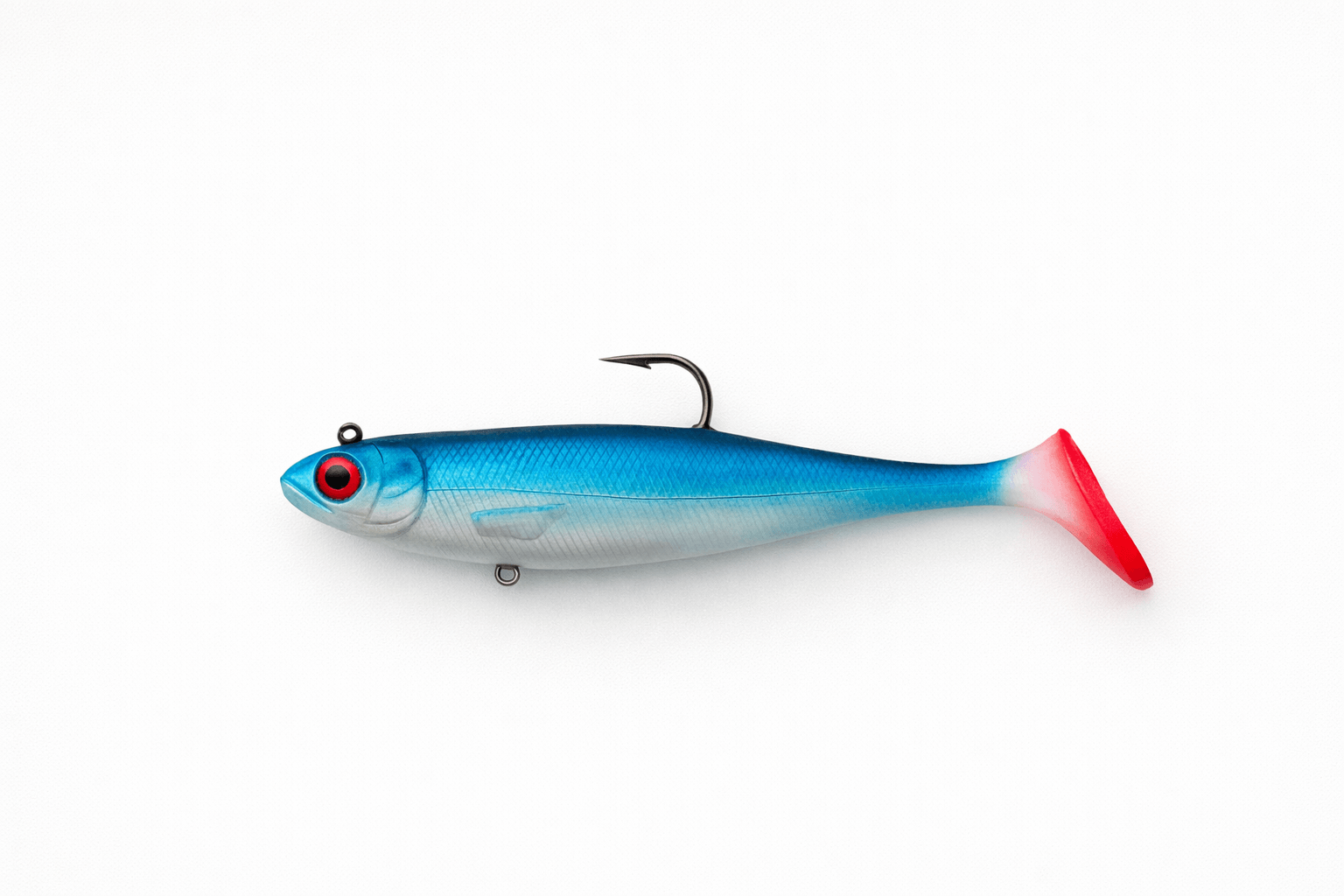 Sa teinte bleu avec reflets argentés imite parfaitement un poisson fourrage évoluant en pleine eau. Ce coloris est particulièrement pertinent lorsque la luminosité est forte et que les prédateurs deviennent sélectifs. Il reproduit les éclats naturels des proies comme les sprats ou les petits harengs, ce qui attire des espèces comme le bar, le lieu ou la vieille.