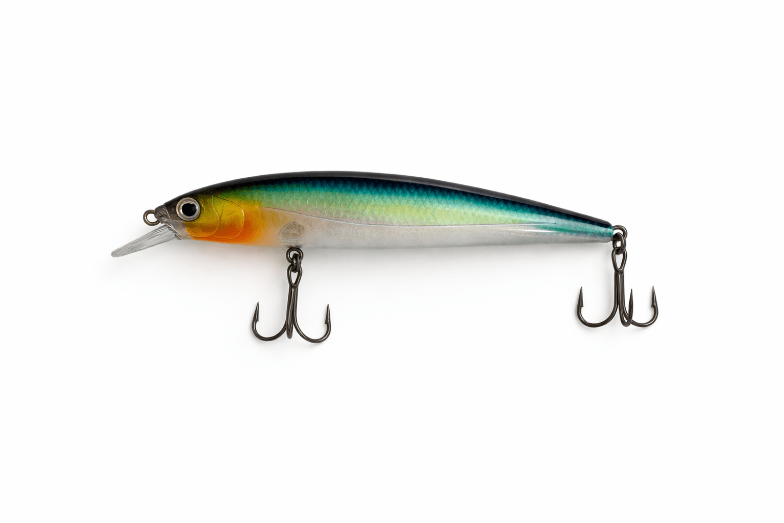 Sa teinte reprend les codes d’un poisson fourrage classique : dos bleu-vert, flancs argentés légèrement translucides, et zone orangée au niveau des ouïes. Rien d’excessif, tout est dans l’équilibre. Ce type de coloris fonctionne particulièrement bien lorsque les poissons comme le bar, le mulet prédateur ou le lieu prennent le temps d’observer avant d’attaquer.